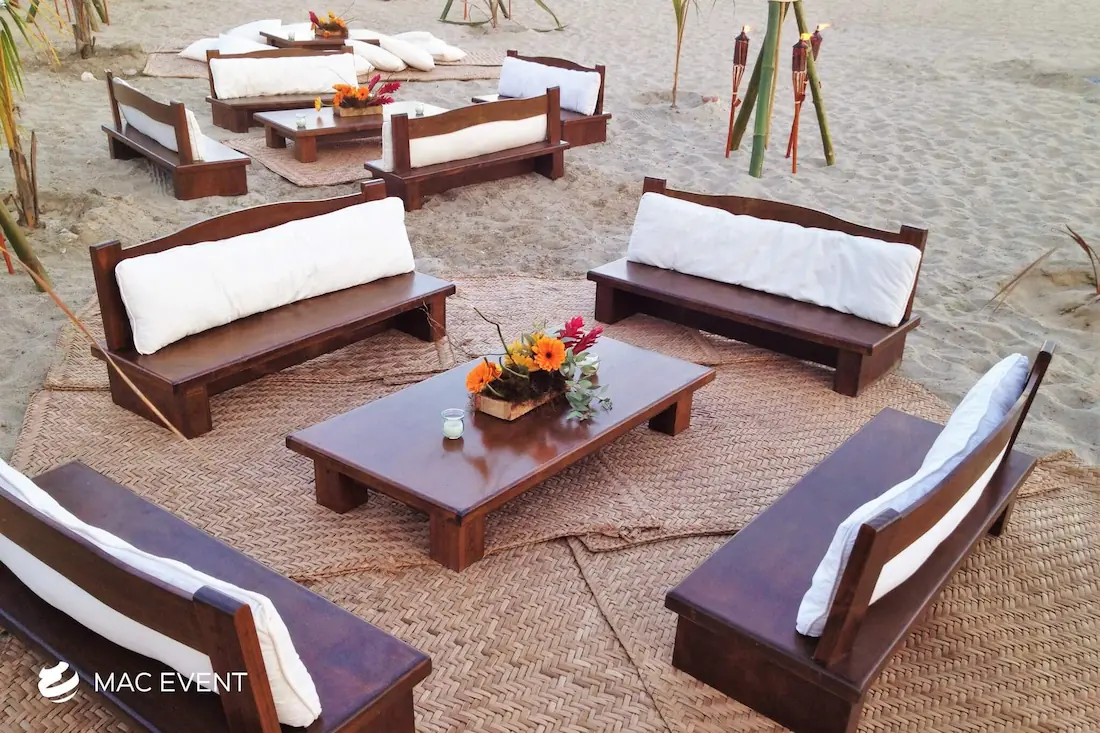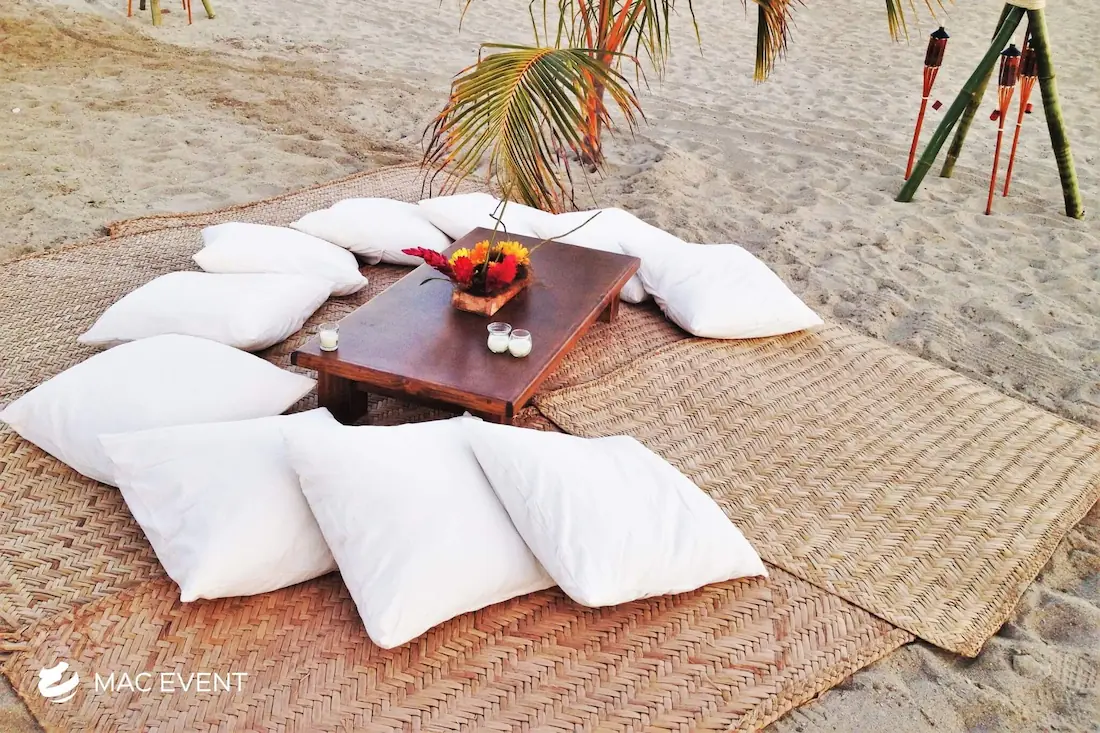 The petate mat adds a touch of authentic Mexican tradition to weddings, beach parties, and corporate events in Ixtapa. Woven from natural palm fibers, this event décor rental brings texture, warmth, and cultural charm to your setup. Perfect for picnic lounges, rustic themes, or boho-inspired spaces, the petate mat serves as a stylish base for floor seating, decorative accents, or display areas. Renting petate mats in Ixtapa allows you to create organic and inviting environments that reflect local craftsmanship. For a natural and culturally rich detail, the petate mat is a beautiful addition to any event.